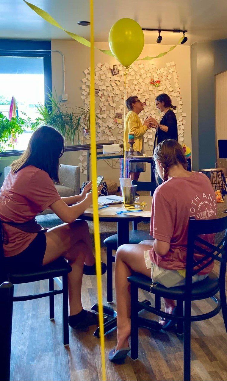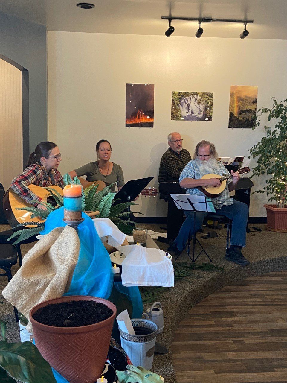 During Coffee Church, you can expect the doors of the cafe to be open for people to come in at any time, to sit around tables, pray, listen to music, hear Scripture from the Christian Bible as well as other literary inspiration, share conversation, share food and drink, and learn about various ways to grow, love, and serve in our Topeka community and world. We sing a blend of pop music, contemporary and traditional church music with acoustic guitars, piano, mandoline, shakers…you name it!